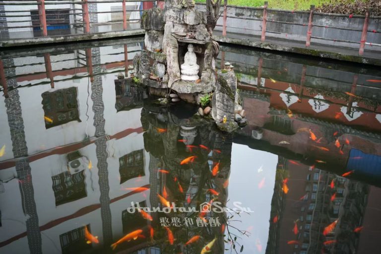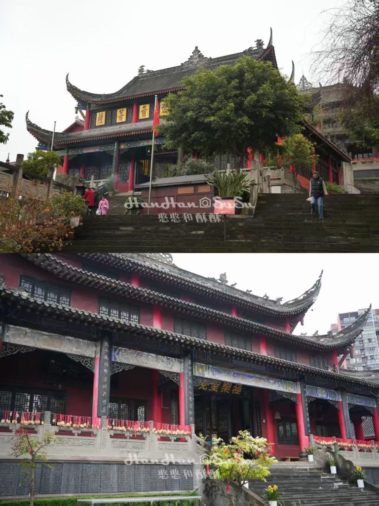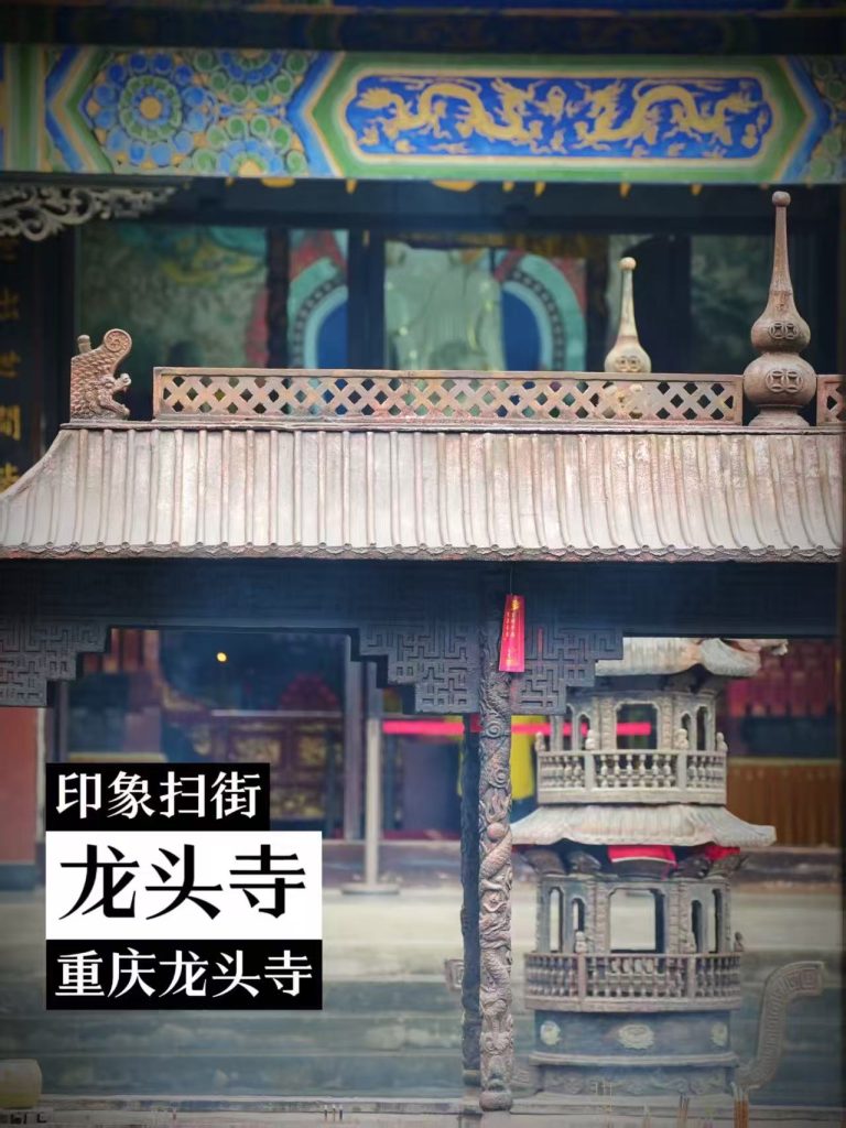 印象扫街:龙头寺(重庆龙头寺) / 随闻 / 作者: hanhanhesusu 重庆龙头寺位于重庆市渝北区兴盛大道,是一座拥有近500年历史的明代古刹。寺庙始建于明朝正德十六年(1521年),因所在山头形似龙头而得名。2005年正式启动修复重建。重建后已建成大雄宝殿、观音殿、放生池等主要建筑,采用三层斗拱式飞檐设计,寺门悬挂2米长的”龙头寺”匾额。如今寺庙规模不大,周围被居民楼环绕,免费向公众开放。作为”龙头寺”地名的起源,这座古刹见证了重庆城市变迁,成为闹市中一处清幽的宗教文化场所。