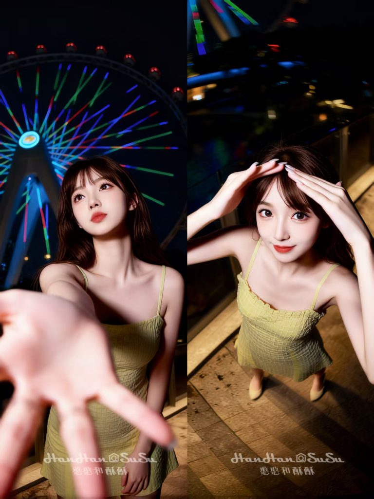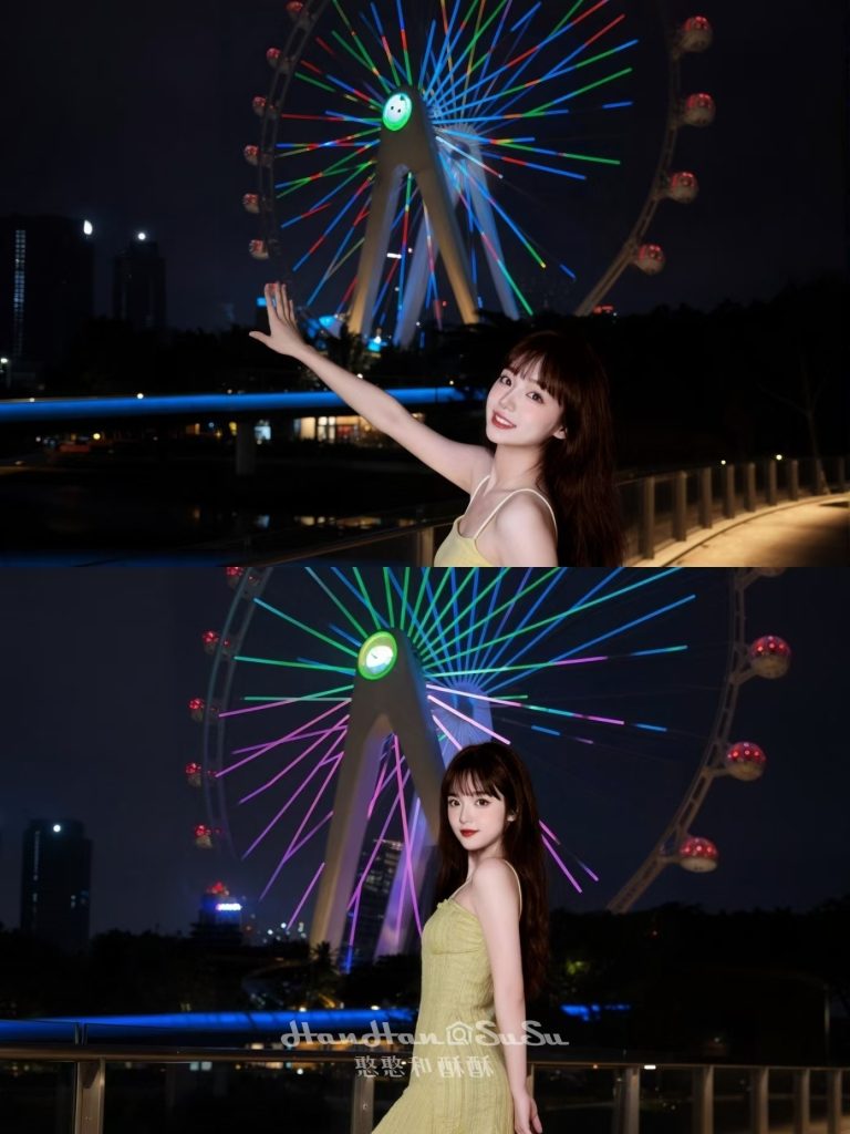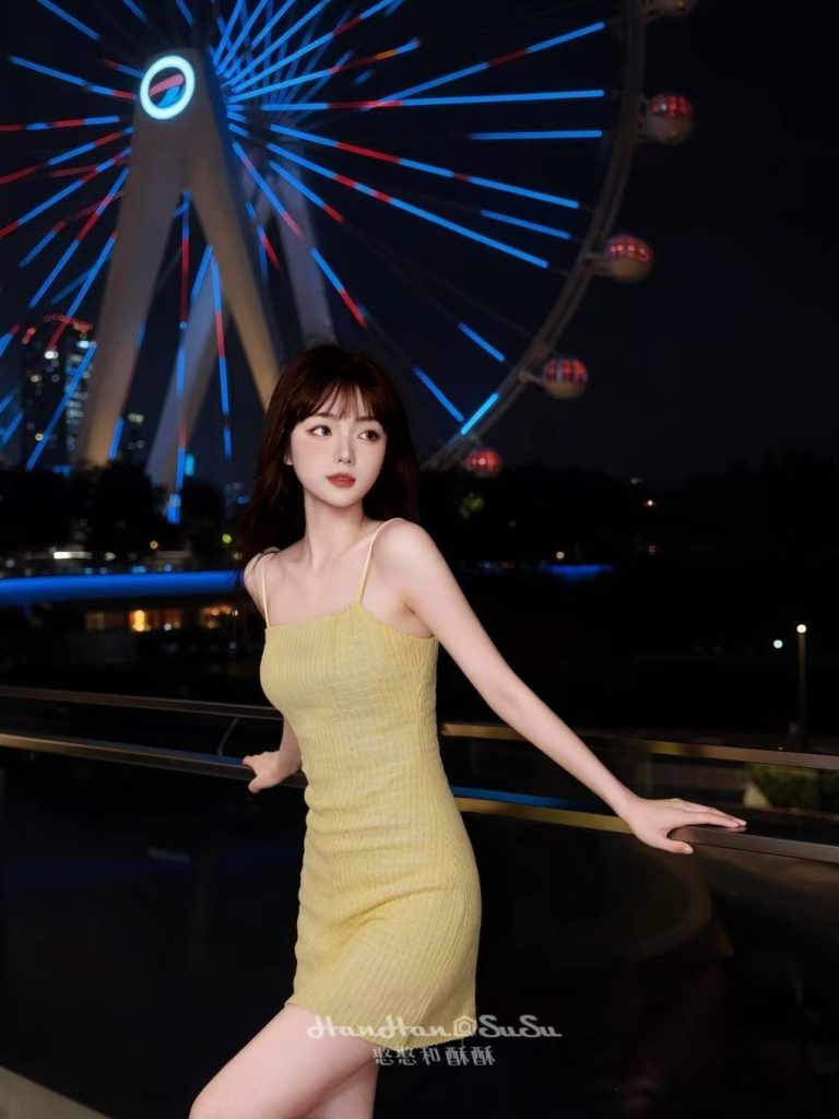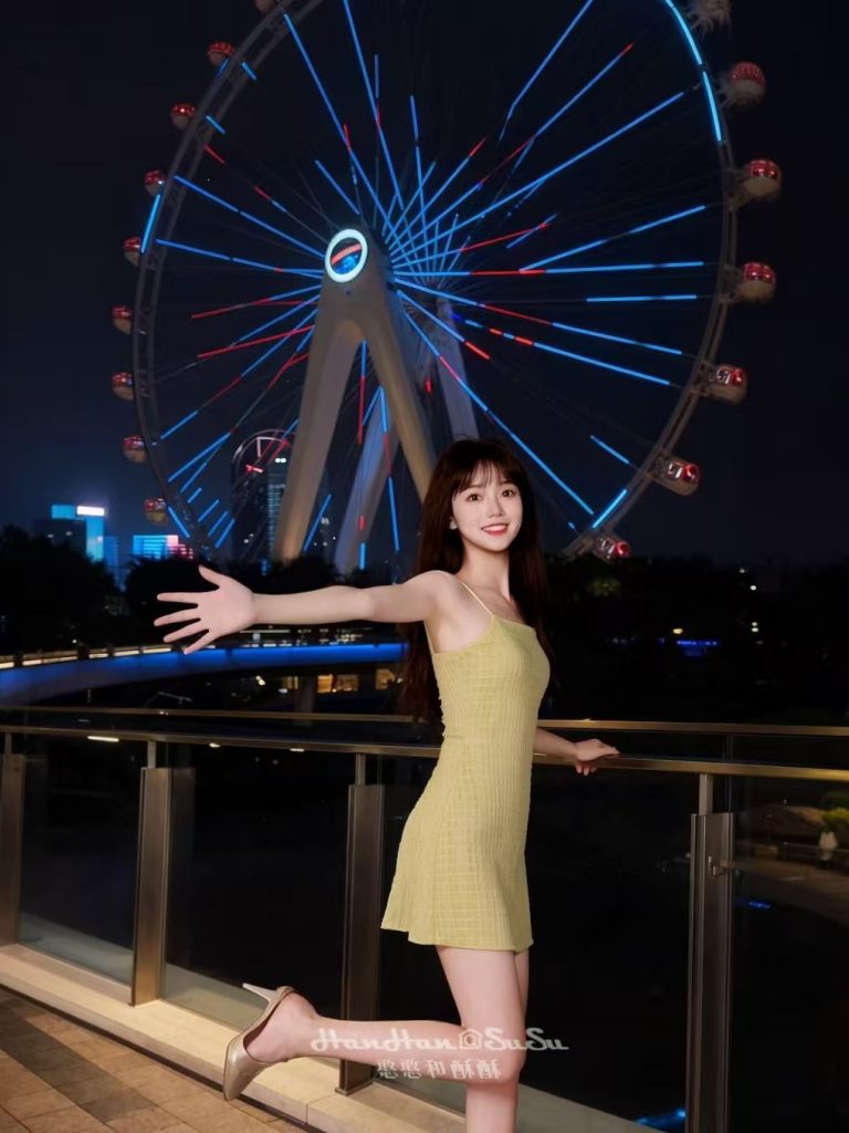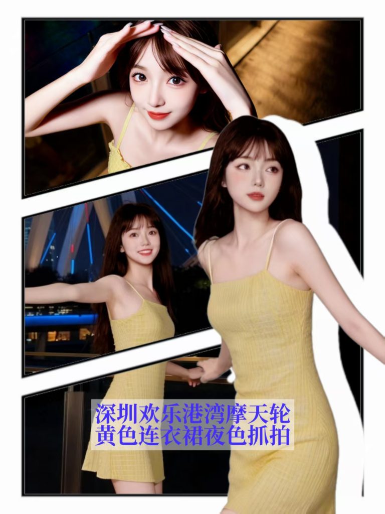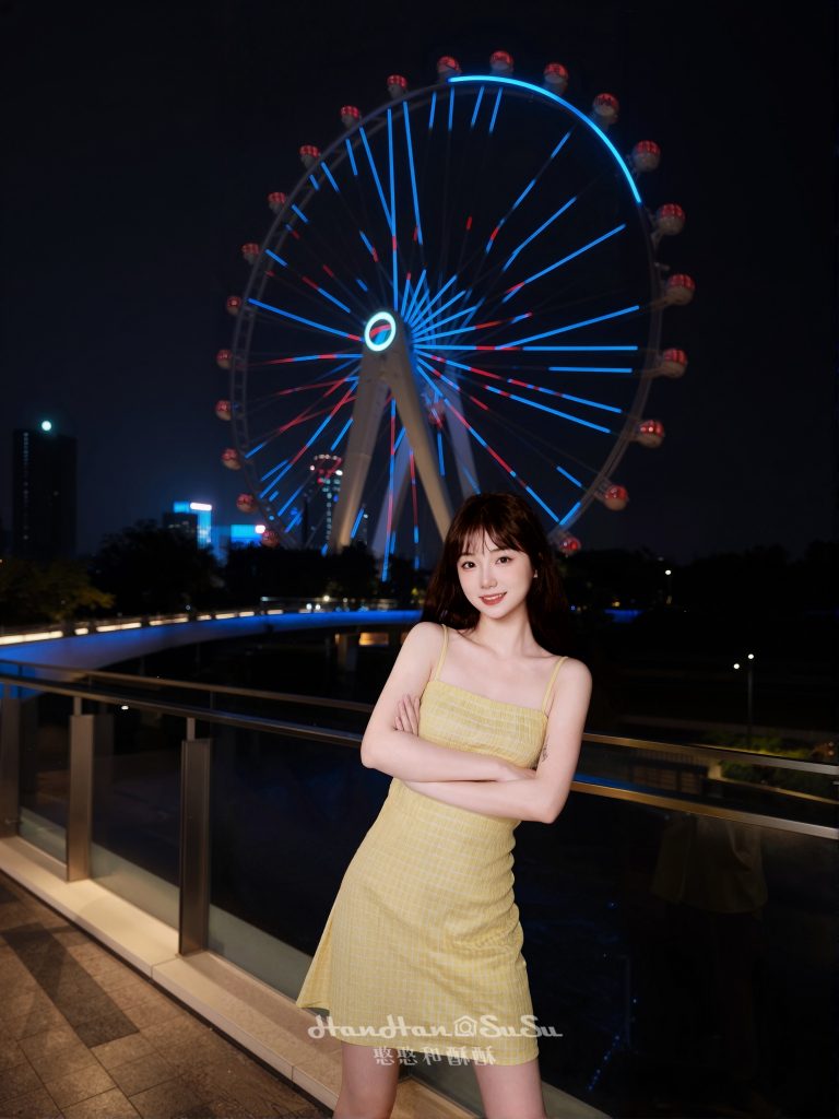 深圳欢乐港湾摩天轮,黄色连衣裙夜色抓拍